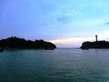 Un paysage plus sympathique pour passer la nuit sous le vent de Pulau Selatan; mais les poissons sèchés sur les bateaux de pêche dégagent un certain fumet |