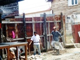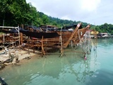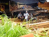 Nous sommes dimanche; les ouvriers travaillent cependant à la construction de bateaux |