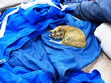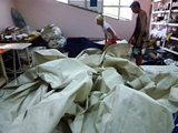 Elle travaille seule dans sa voilerie, malgré son assistant; tous les chats du monde sont des fainéants! |