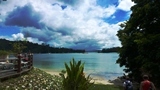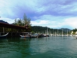 La baie de Telaga, dans l'Ouest de Langkawi, bordée par la plage Pantai Kok, est entourée de montagnes calcaires envahies par la jungle |