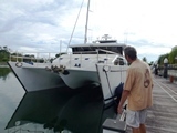 Après avoir ancré Catafjord entre la plage et les "murs" anti-tsunami, nous entrons avec l'annexe au port de plaisance. |