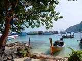 Dimanche, l'après-midi est bien avancée, et on arrive à Ton Sai Bay sur l'île Koh phi phi Don (Ko Pipi). La baie est magnifique, mais... |