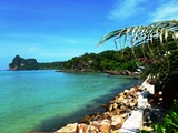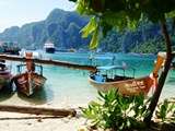Hôtels, restaurants, boutiques abondent sur une petite superficie; le tsunami en 2004 y a fait plus de 5000 victimes . Mais un an plus tard, tout était reconstruit | De l'autre côté de l'isthme, la baie Loh Dalum; peu d'embarcations; nous décidons que nous y déménagerons avec Catafjord l'après-midi |