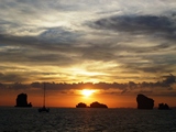 Les bateaux venant admirer "le sunset" sont repartis avec leurs clients vers leurs hôtels;Restent le silence et le chant des oiseaux |