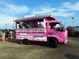 Mais fréquemment nous bénéficions des "taxis roses" à la disposition des nombreux touristes partant en plongée ou en croisière pour la journée |