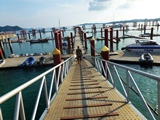 La baie est très fréquentée, et nous sommes à 1000 lieues de nos escales solitaires d'Indonésie | Un long wharf relie le ponton à la petite ville de Chalong |