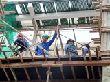 Travail sous la chaleur, échafaudages peu sécurisés, et pourtant le sourire! |