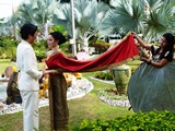 Sur la route de Nayang Beach vers Yacht-Haven un arrêt dans les jardins d'un petit temple, se prêtant à de belles photos pour jeunes mariés |