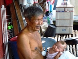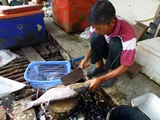 Marché, petites échopes, Olivier y déniche une petite spécialité de petits poissons aux arachides pour l'apéro... |