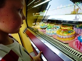 Ah voilà un étalage qui convient mieux à Paul! les gâteaux rivalisent de décorations et de couleurs |