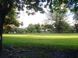 Pelouse à "l'anglaise" devant les bâtiments de l'ancienne base militaire |