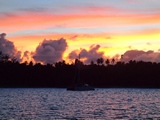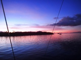 Les poissons sont à l'affût de la moindre épluchure ou autre...et les requins viennent jusqu'à la surface derrière le bateau | Pas un bruit ne vient troubler la tombée du jour...sauf peut-être l'accordéon |