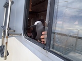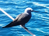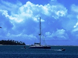 Un autre voilier qui arrive, et la chaîne de solidarité se met en place pour lui indiquer où s'amarrer à un bloc de corail... Un voilier français... |