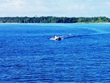 Nous longeons Nelson Island, pas trop près quand même, car elle est moins hostitalière qu'il n'y parait | Première nuit en mer; on pourrait croire qu'on est parti pour une traversée tranquille |