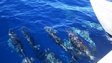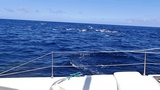 les dauphins nous accompagnent un très long moment nageant aux étraves, entre les 2 coques |