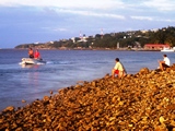 Le vaste lagon (2 fois la surface de l'île) suffit aux pirogues comme terrain de pêche | Après notre journée de maintenance sur Catafjord, on assiste au retour de la pêche |