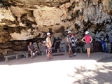 On se croirait de retour aux leçons de choses avec notre guide; la caverne longue de 500 mètres est un site impressionnant et incontournable. | On découvre que les tortues aiment les calins, même si elles n'ont pas la peau douce |