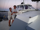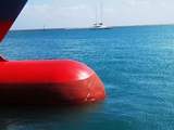 Une fois par semaine, faut libérer de bon matin le quai pour le cargo qui arrive de Maurice. L'occasion pour nos amis de larguer les amarres... | Le Mauritius Pride décharge ses containers, tandis que nous sommes mouillés derrière le corail |