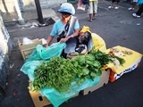 Dans la rue principale donnant accès au marché , très grande effervescence autour des marchands installés sur les trottoirs |