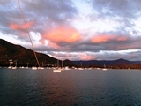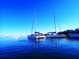 Sérénité du mouillage de Rivière-Noire à la tombée du jour | Tous les jours les catas embarquent les touristes pour aller nager avec les nombreux dauphins qui ont élu domicile près de la baie |