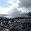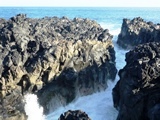 Le Gouffre de l'Etang-Salé, un long couloir, où les vagues de l'Océan indien s'en donnent à coeur joie, entre les roches volcaniques |