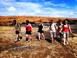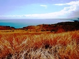 Nous entamons notre randonnée dans la savane de St Paul, avec une vue magnifique sur la baie |