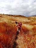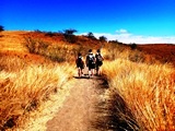 serpentant dans la savane couleur ocre, le sentier tantôt large |