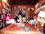 On se réfugie dans la bibliothèque, avec nos co-locataires, le seul endroit chauffé, mais pas très éclairé |
