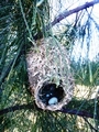 Cette fois on y voit même des oeufs; il parait que " Le mâle construit le nid alors que la femelle s'occupe de l'aménagement intérieur " |