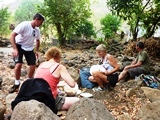 Pique-nique tous les 5 au village de La Montagne dans la ravine Magloire : faut prendre des forces, une longue marche nous attend |