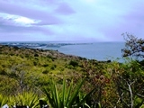 Paysage de savane, avec vue sur mer; des tronçons pas toujours si bien pavés. |