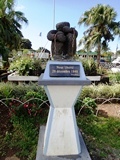Sur le parvis de l'église de Bras Panon une oeuvre en basalte signée Dolène Curtis-Furma.