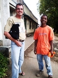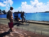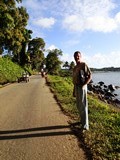 Rencontre avec Joël qui travaille pour la société chinoise qui élargit la route qui conduit du port au village |