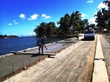 La route est parfois fermée, le temps pour un camion ou un engin de manoeuvrer, nous laissant le loisir d'observer les ouvriers pieds nus ou en sandalettes dans le béton... |