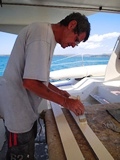 Pendant plus d'une semaine on ne lève pas le nez, avant l'arrivée de Anne et Nicolas sur Antsiva, jolie goëlette de 28m. |