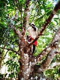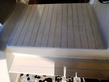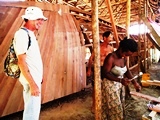 Nouvelle phase : la peinture entre les lattes; on doit abandonner momentanément le chantier car on a plein d'invités pour l'anniv de Domi à Nosy-Be |