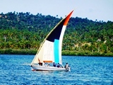 Les voiles sont plus colorées, et aussi souvent, en meilleur état, que celles des pirogues de Madagascar |