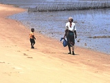 Tout le monde est parti "à la ville" faire les appros; restent les personnes âgées, quelques pêcheurs, peu de femmes, quelques enfants |
