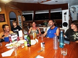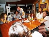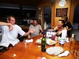 Avec l'équipage du Lagoon, et avec les Pirates qui viennent d'arriver, toujours à Guzzi Marina |