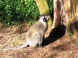 Papa vervet affiche ses attibuts d'un bleu intense mêlé au rouge |