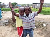 Certaines classes sociales habitent maintenant des maisonnettes soignées dans des zones des townships, mais ce n'est pas le cas d'ici |