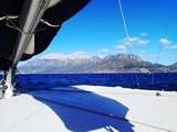 La marina ce sera pour plus tard; on s'amarre à couple d'un grand catamaran juste avant le premier pont |