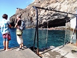 Des cordes pour s'agripper quand le ressac rend sportif la montée ou la descente dans la navette |
