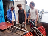 Domi donne un dernier coup de main aux copains d'Ushuaia pour réparer le gouvernail; je fais les dernières courses |