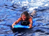 La factrice; j'ai pas posté mon courrier et on s'apprête à lever l'ancre; Isa vient le chercher à la nage pour le poster le lendemain |